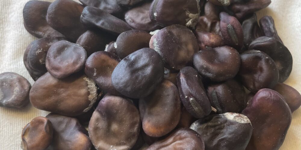 FAVA MOURDA REINA MOUZ – Purple Queen in Catalan – is an incredibly rare and endangered Catalan heritage variety that was given to me by fellow seed collector Jesus Vargas. A delicious and hardy variety that crops heavily from being grown through the winter. Only as the pods ripen do the seeds turn from green to a deep purple.
